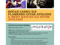 - Katılımcılar, Müzikalite Sanat Merkezi’nde, aynı gün ve saatlerde gerçekleştirilecek olan Flamenko Gitar ve Ritim Atölyelerinden yalnız birine kayıt yaptırabilirler.